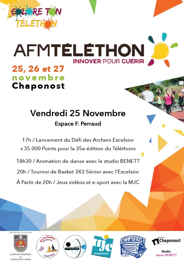 L’EXCELSIOR participera du 25 au 27 NOVEMBRE aux manifestations programmées sur la commune de CHAPONOST au profit de l’AFM TELETHON